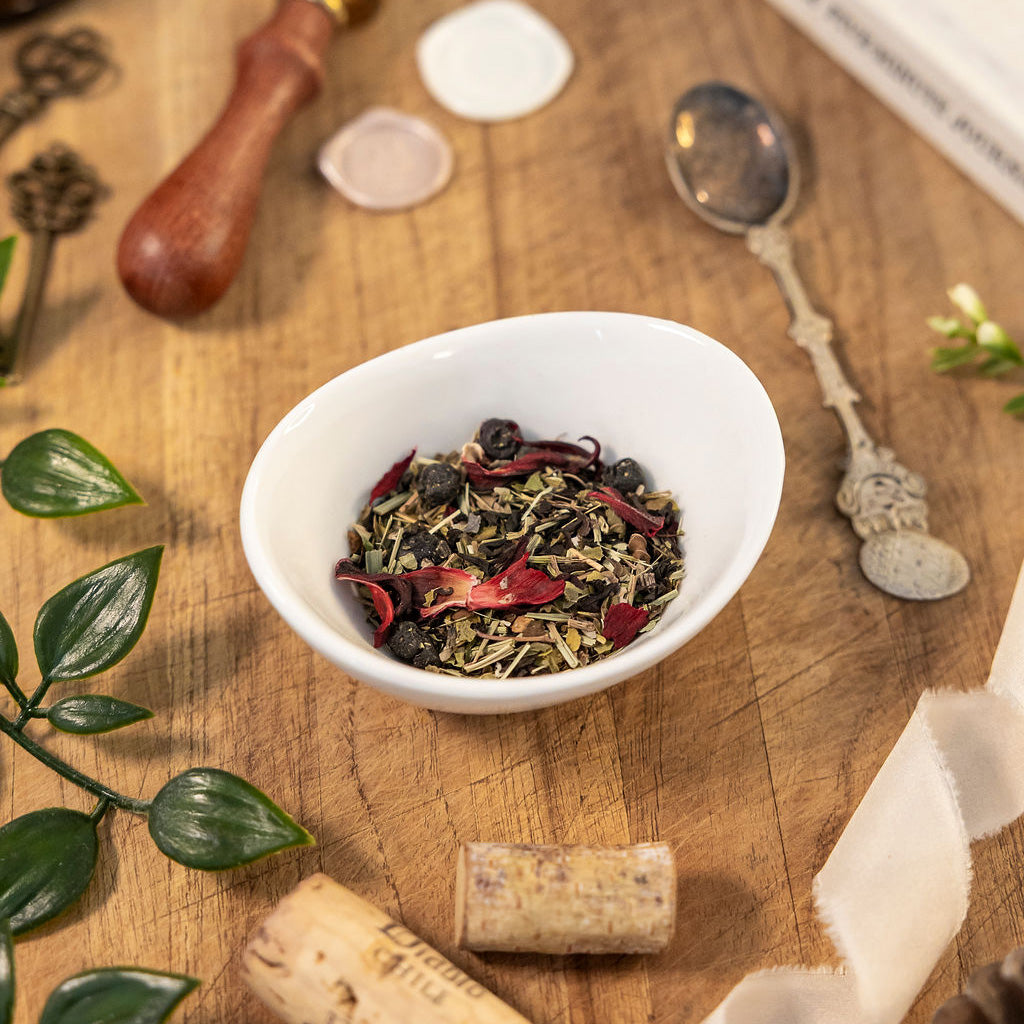 This tea is a vibrant and multi-layered blend that combines fruity, tart, earthy, and citrusy elements. Deep berry notes from elderberry, black currant, and blueberry create a rich, slightly tangy base, balanced by the natural sweetness of strawberry and papaya. Hibiscus adds a bright tartness, while yerba mate brings an earthy depth with a gentle energy boost. The herbal components—lemongrass, echinacea lemonherba, tulsi, and lime leaves—add a refreshing citrusy and slightly floral complexity. Finally, black tea provides a smooth, malty backbone that ties everything together. The result is a bold yet balanced tea with a refreshing, slightly tangy finish
